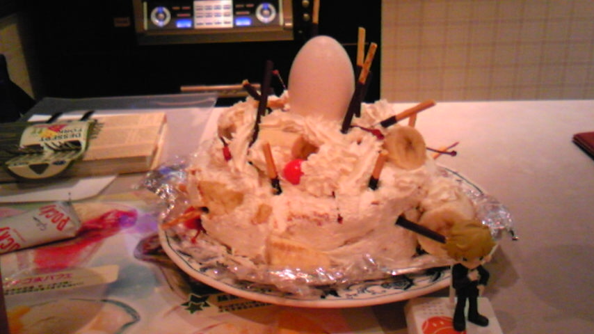 ケーキ、卵の部分をさけてほじくってたので食べてる途中に崩れてしまいました…